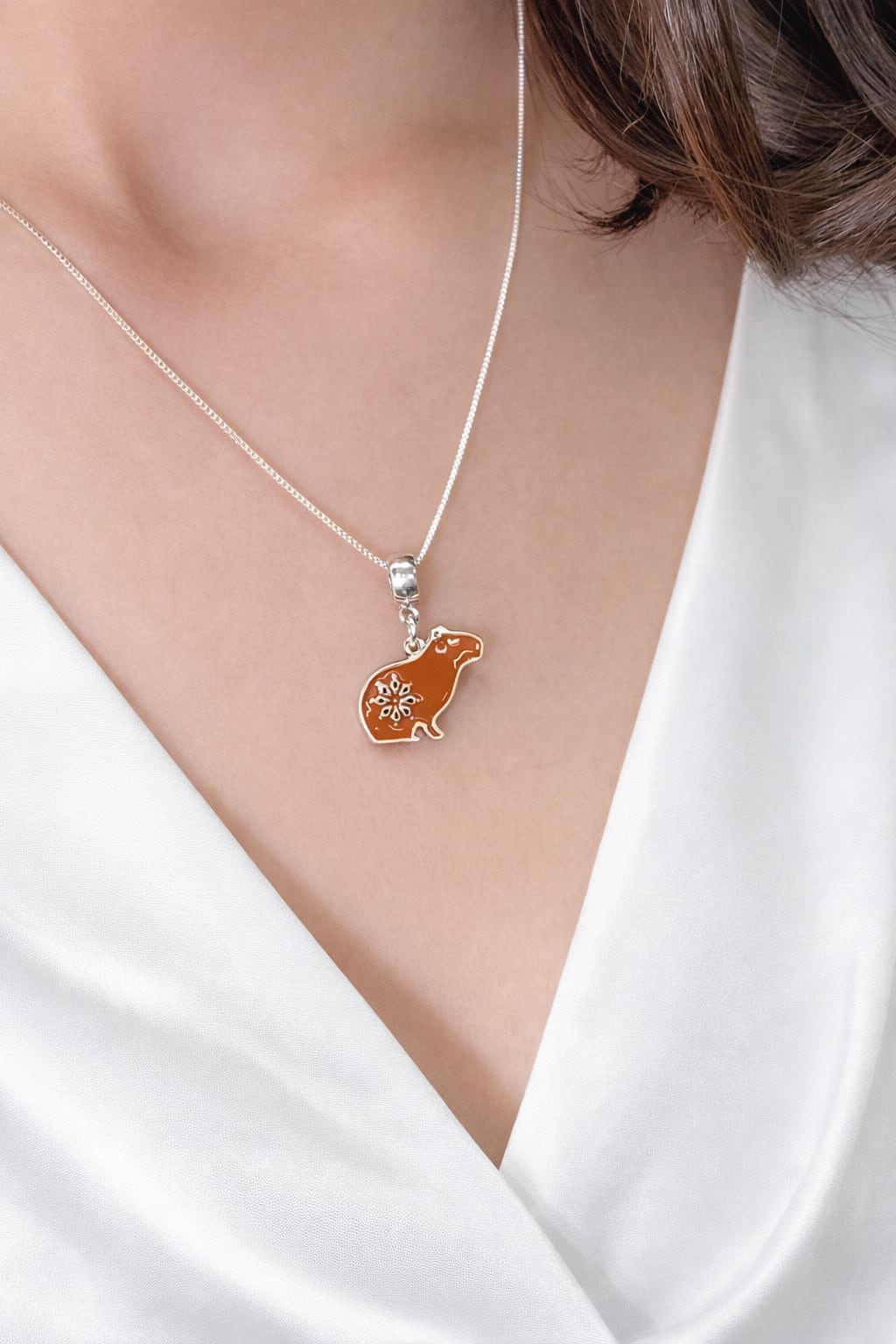 見るたびに癒されるカピバラの姿が、胸元をそっと彩ります。