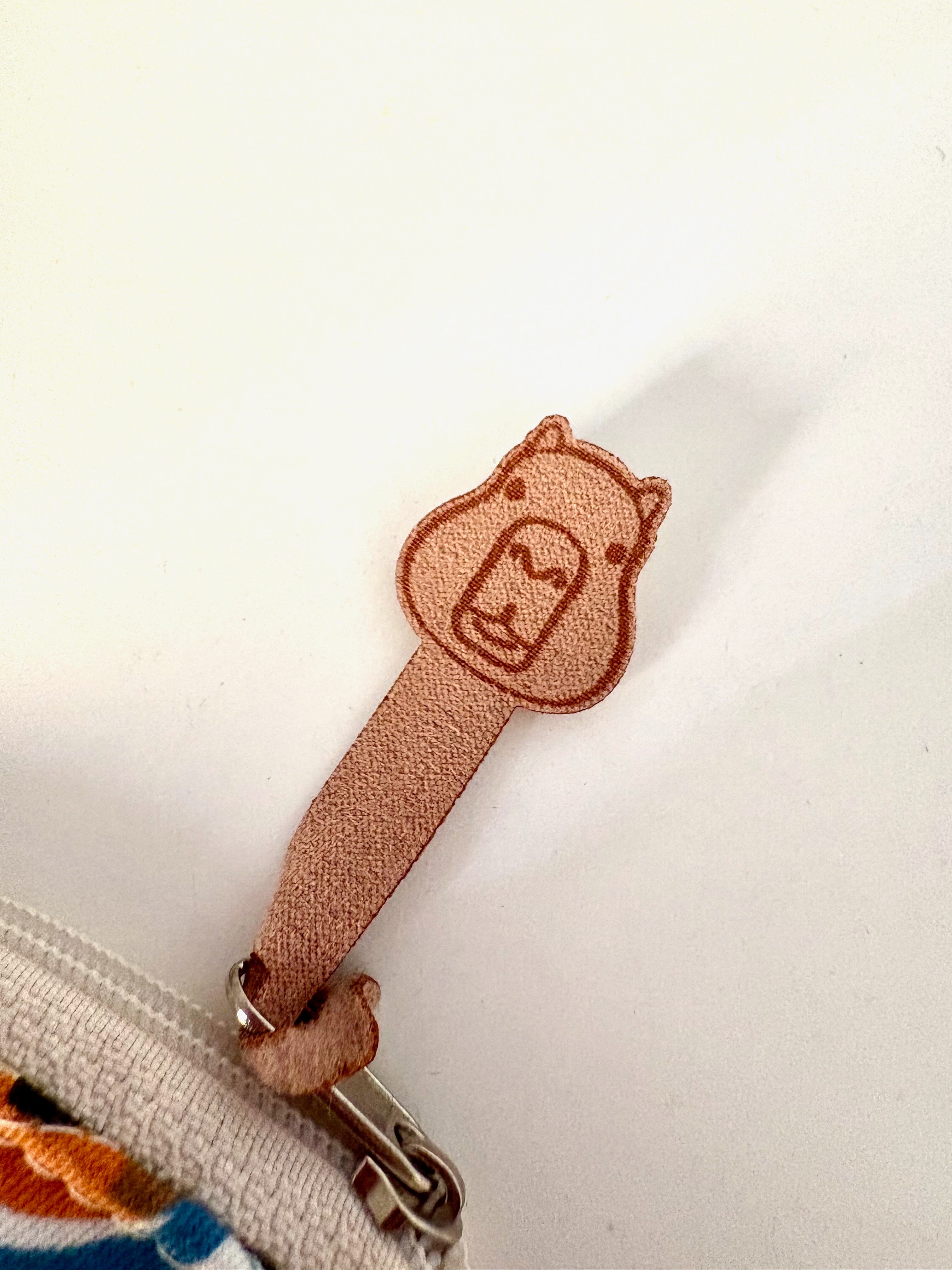 ファスナーにはカピバラ型の革タグ付き。