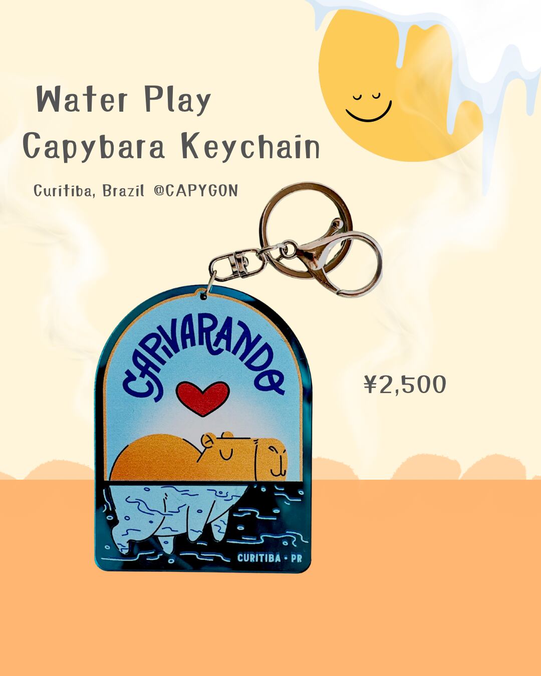 ブラジル・クリチバのデザイナーによって制作された、ユニークな「水あそびカピバラ」シリーズのキーホルダーです。