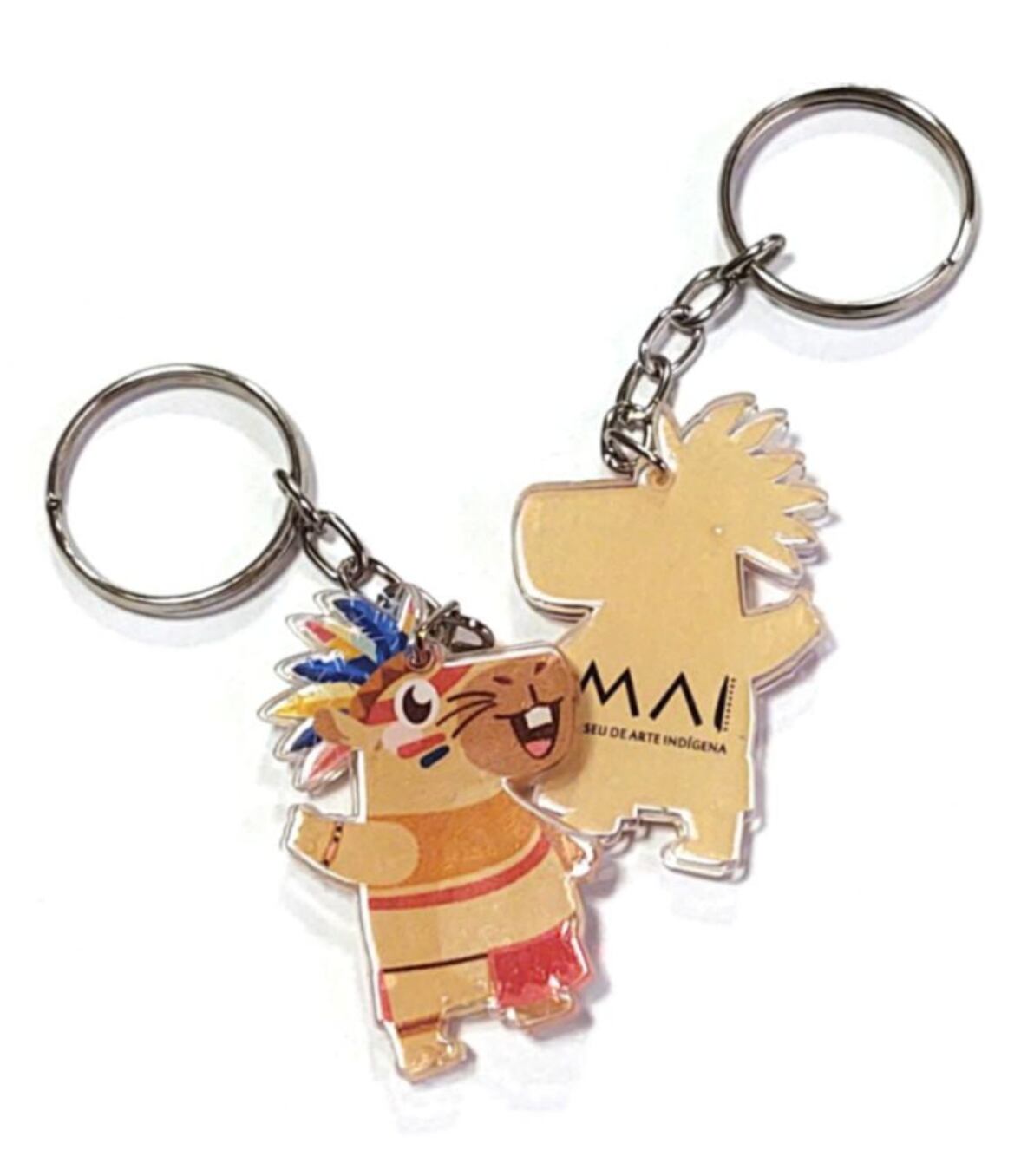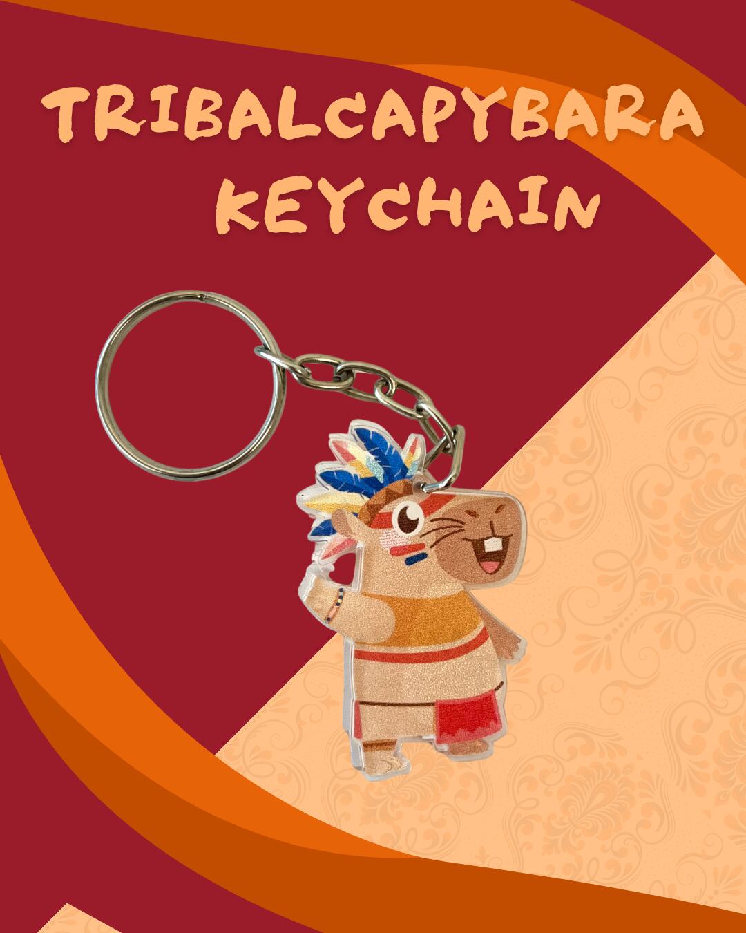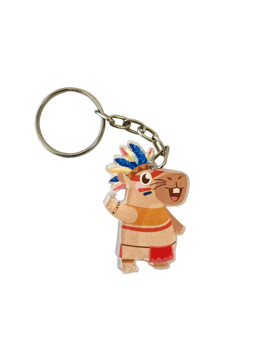 ブラジルの先住民族をイメージしたカピバラが描かれた、温かみのあるアクリルキーホルダーです。