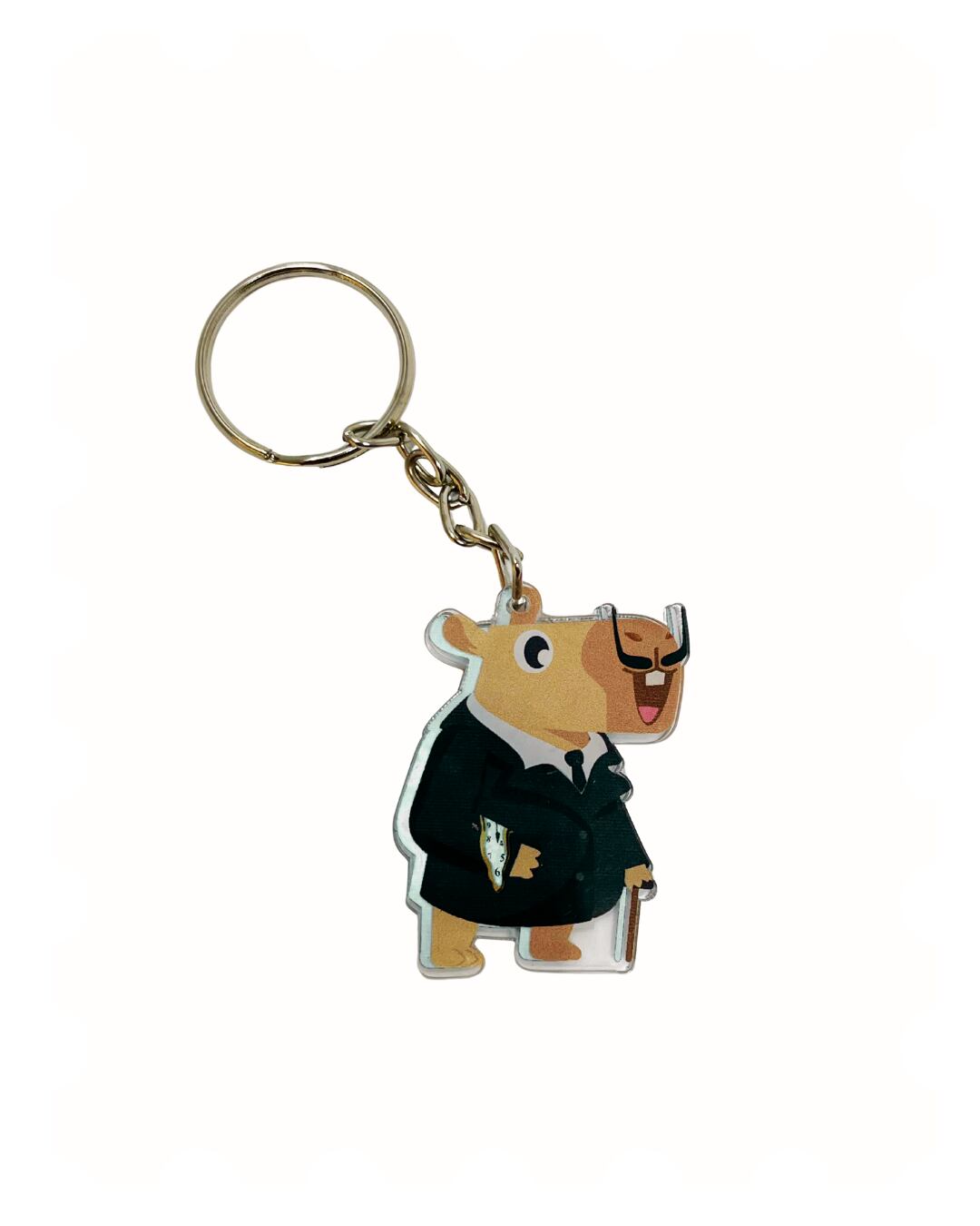 スペインの芸術家サルバドール・ダリをモチーフにした、ユーモアと個性あふれるカピバラのアクリルキーホルダーです。